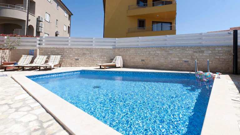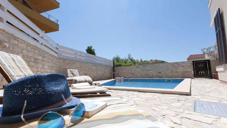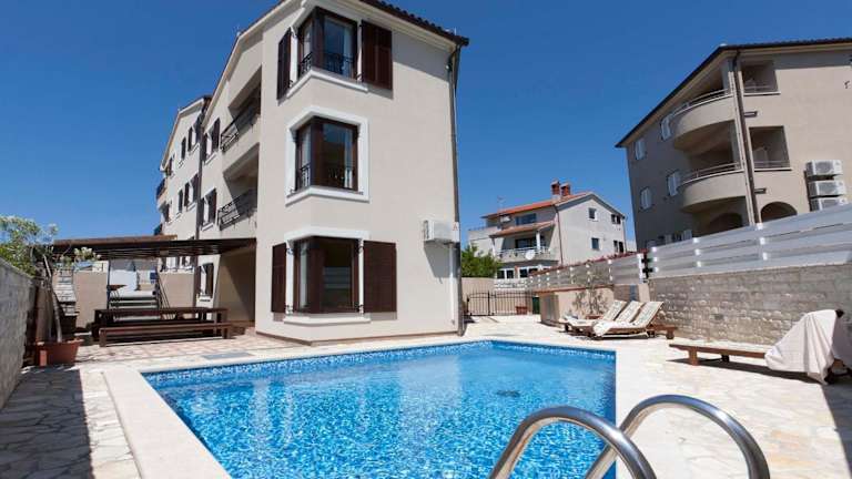 Die Villa UNDINA ist ein luxuriöses Ferienhaus, das Platz für große Gruppen bietet. Zur Ausstattung gehören ein Balkon mit Meer- und Poolblick, ein Außenpool, eine Sauna sowie ein Whirlpool. Das Haus verfügt über einen eigenen Pool, einen Garten mit Grillmöglichkeiten und kostenloses WLAN. Die Unterkunft wird von einem privaten Gastgeber betrieben, wobei spezifische Richtlinien für Feiern und Gästealter gelten.