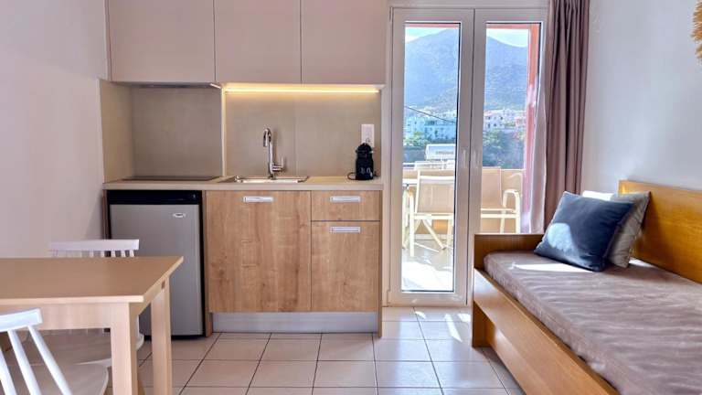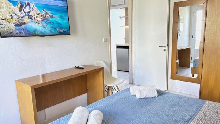 Die Apartments im Villa Vasilis beinhalten ein separates Schlafzimmer sowie eine gut eingerichtete Küchenzeile mit einem Esstisch und Kühlschrank. Sie bieten zudem Sat-TV, einen Safe und ein eigenes Bad mit Dusche und Haartrockner. Zur Ausstattung gehören auch ein Elektroherd und eine Mikrowelle mit Kochfeld.