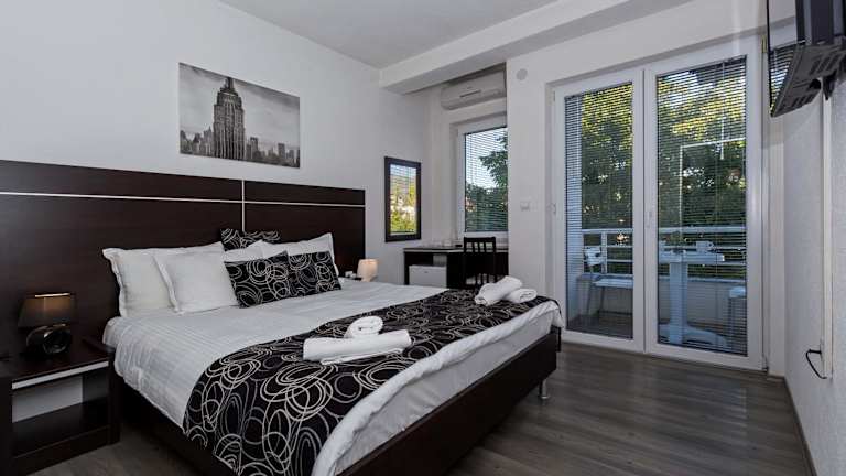 Die Villa Veron bietet moderne Zimmer in einer stilvollen Schwarz-Weiss-Ausstattung. Die hoteleigene Aussenterrasse lädt zum Entspannen ein. Zudem sind Dienstleistungen wie Wäsche- und Bügelservice sowie Leihvelos erhältlich, um die Umgebung zu erkunden.