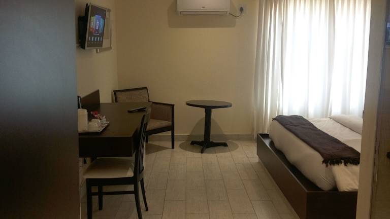 Die klimatisierten Zimmer verfügen über ein Doppelbett oder ein Kingsize-Bett sowie einen Schreibtisch. Ausgestattet sind sie zudem mit einem Minikühlschrank, einer Tee-/Kaffeemaschine und einem Bügelset. Unterhaltung bieten ein TV-Gerät mit Satelliten- und Kabelempfang und WiFi (ohne Gebühr). Die Badezimmer sind mit einer Dusche und Badewanne ausgestattet und bieten Haartrockner sowie Kosmetikartikel. Familienzimmer sind verfügbar, und rollstuhlgerechte Zimmer können ebenfalls gebucht werden.