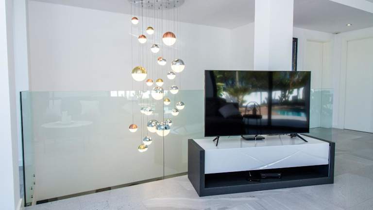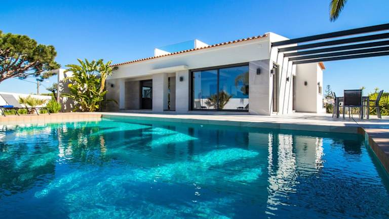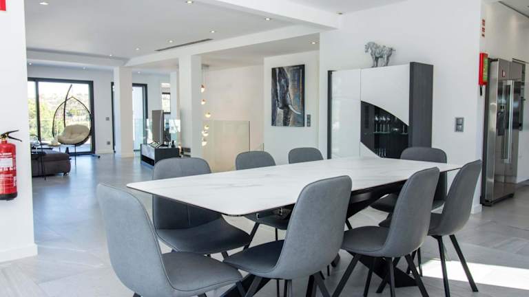 Die Villa verfügt über 4 Schlafzimmer, eine Küche mit Kühlschrank und Geschirrspüler, sowie 5 Badezimmer, die mit Duschen, Haartrockner und Waschmaschine ausgestattet sind. Handtücher und Bettwäsche werden bereitgestellt.