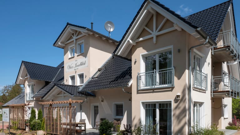Das Ferienhaus Villa Vier Inselblick hat insgesamt 4 moderne und komfortabel eingerichtete Ferienwohnungen. Die beiden Ferienwohnungen im Erdgeschoss verfügen jeweils über einen Wohnraum mit Küchen- und Essbereich sowie Kaminofen, 2 Schlafzimmer, zwei Bäder und eine eigene Sauna. Die zwei Ferienwohnungen im Obergeschoss verfügen jeweils über einen Wohnraum mit integrietem Küchen- und Essbereich und Kaminofen, drei bzw. vier separten Schlafzimmern mit Balkonen und drei Bädern.
