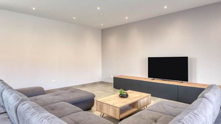 Die Villa umfasst 5 Schlafzimmer, eine Küche mit Kühlschrank und Geschirrspüler sowie 3 Badezimmer, die jeweils mit Dusche, Haartrockner und Waschmaschine ausgestattet sind. Ein Fernseher ist ebenfalls vorhanden.