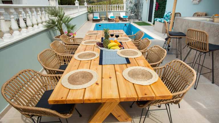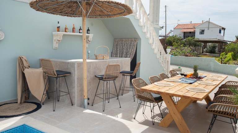 Die Villa bietet Grillmöglichkeiten für die Gäste. Zudem gibt es eine Poolbar, an der Snacks und Getränke erhältlich sind.