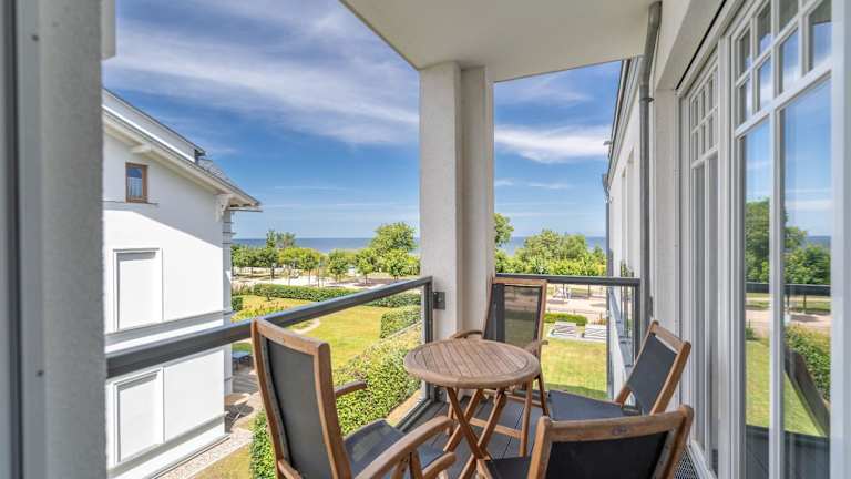 Die Ferienwohnung umfasst zwei Schlafzimmer, ein Wohnzimmer und eine gut ausgestattete Küchenzeile. Zudem bietet sie einen Balkon mit Meerblick, zwei Badezimmer mit Dusche und Badewanne sowie einen Satelliten Flachbild-TV. Handtücher und Bettwäsche werden bereitgestellt.