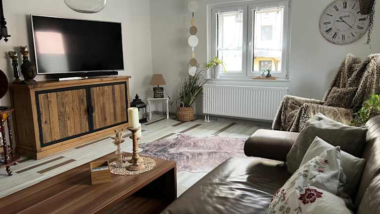 Die Ferienwohnung verfügt über ein Wohnzimmer mit einem Sitzbereich und einem Essbereich, zwei Schlafzimmer sowie ein Badezimmer mit Dusche und Badewanne. Die Küche ist mit einem Kühlschrank, Geschirrspüler und Ofen ausgestattet. Zudem sind ein Blu-ray-Player sowie kostenloses Wifi verfügbar. Bettwäsche und Handtücher werden bereitgestellt.