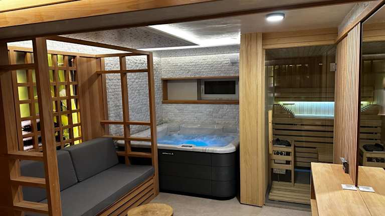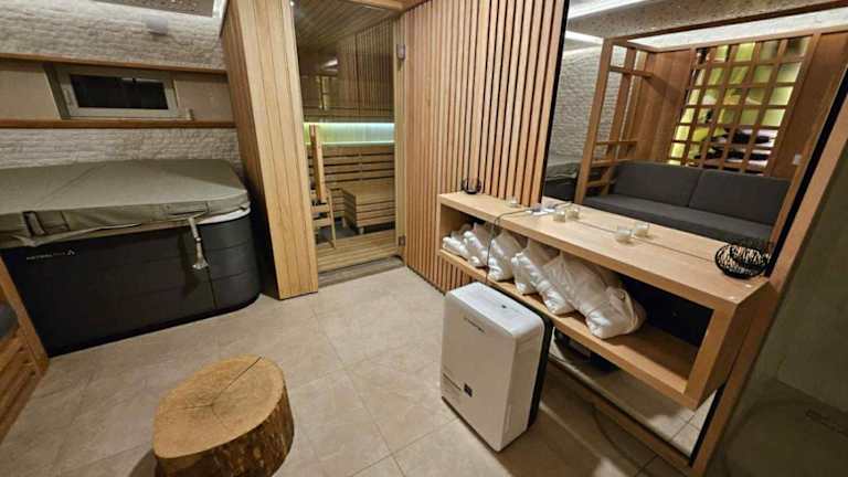 Die Unterkunft Villa Wood & Green SPA bietet Übernachtungen in einer großen Villa mit einem saisonalen Außenpool, einem Garten und einer Gemeinschaftslounge. Die Villa verfügt über eine Klimaanlage, 5 Schlafzimmer, ein Wohnzimmer und eine voll ausgestattete Küche. Zusätzliche Annehmlichkeiten umfassen einen Grillplatz sowie einen Whirlpool und eine Terrasse. Die Unterkunft bietet kostenloses WLAN und einen privaten Parkplatz.