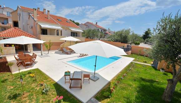 Die Unterkunft Villa Zupan bietet einen schönen Poolblick sowie einen saisonalen Aussenpool. Die Villa umfasst 4 Schlafzimmer, ein Wohnzimmer, eine voll ausgestattete Küche und 4 Badezimmer. Es stehen Ihnen auch ein Garten, eine Terrasse, eine Gemeinschaftslounge und Grillmöglichkeiten zur Verfügung. Kostenloses WLAN sowie ein kostenloser Privatparkplatz sind vorhanden.