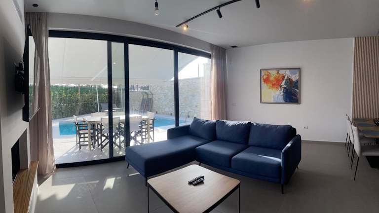 Die Villa bietet Platz in drei Schlafzimmern sowie einem Wohnzimmer und ist klimatisiert. Zur Ausstattung gehören ein Flachbild-TV, eine gut ausgestattete Küche mit Geschirrspüler und Ofen, sowie drei Badezimmer mit Dusche. Von der Terrasse aus geniesst man einen schönen Blick auf das Meer.