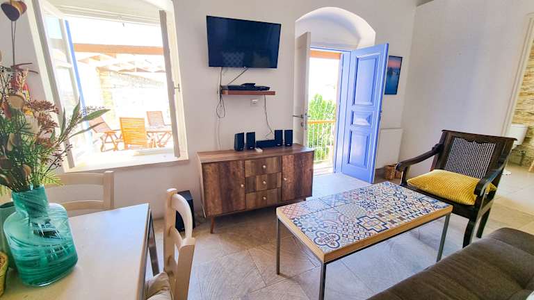 Die Ferienwohnung ist klimatisiert und umfasst 2 Schlafzimmer, ein Wohnzimmer sowie eine voll ausgestattete Küche mit Kühlschrank und Wasserkocher. Ein Badezimmer mit Badewanne ist ebenfalls vorhanden. Handtücher und Bettwäsche werden bereitgestellt.