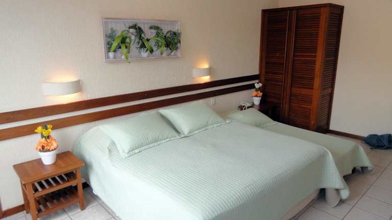 Die klimatisierten Zimmer verfügen über Kabel-TV, eine Minibar, ein Telefon sowie ein eigenes Bad. Alle Zimmer sind in einem hellen Strand-Stil eingerichtet und sorgen für eine angenehme Bequemlichkeit während des Aufenthalts.