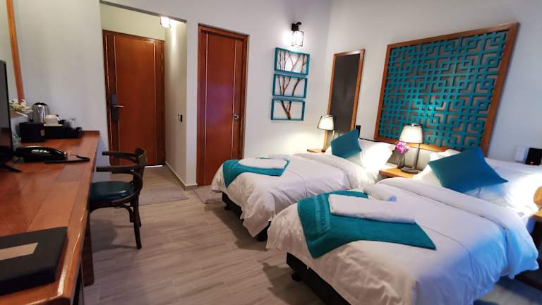 Die klimatisierten Zimmer sind mit einem Schreibtisch, einem Wasserkocher, einem Kühlschrank, einer Minibar, einem Safe, einem Flachbild-TV, einem Balkon sowie einem eigenen Badezimmer mit Dusche ausgestattet. Jedes Zimmer verfügt über Bettwäsche und Handtücher.