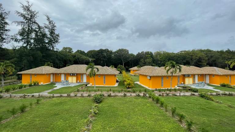 Village Kawann - Toumalacai 246 besticht durch einen Balkon mit Gartenblick, einer Bar und einem Tennisplatz. Die Unterkunft bietet zudem einen eigenen Strandbereich, einen Garten, eine Terrasse sowie einen ganzjährigen Aussenpool.