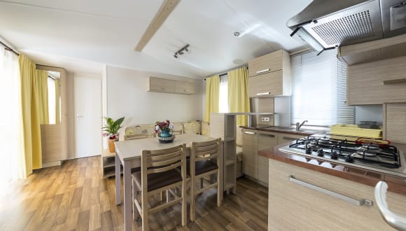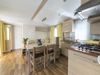 Cerchi una struttura per famiglie in Sardegna con un’atmosfera rilassata e accesso a una spiaggia appartata? Il Camping Village Li Nibari sorge proprio a pochi passi dalla spiaggia di Marina di Sorso, nel Golfo dell’Asinara. Se poi, oltre alle giornate al mare, volessi anche concederti qualche gita in campagna, nelle vicinanze di questa struttura ci sono diversi borghi in collina e parchi nazionali che aspettano solo di essere esplorati. Non che sia necessario per forza andarsene in giro per divertirsi... Le giornate qui trascorrono piacevolmente grazie alla presenza di un complesso di piscine circondate da lettini e alberi di pino che regalano ombra. Nei mesi di luglio e agosto, è previsto un programma giornaliero di attività per intrattenere tutta la famiglia. I bambini più piccoli possono passare il tempo al miniclub, e tu puoi esplorare la costa su una bicicletta a noleggio o andare a prendere lezioni presso la vicina scuola di surf. Il divertimento prosegue anche dopo il tramonto, grazie all’intrattenimento serale e al miniclub per adolescenti. La struttura mette a disposizione dei barbecue e in loco c’è un pratico negozio dove puoi reperire tutto l’occorrente per preparare da mangiare. Se non hai voglia di cucinare, nessun problema: il bar ha un’ampia scelta di spuntini veloci, in loco c’è anche una pizzeria da asporto oppure puoi provare uno dei tanti localini di pesce sulla spiaggia. La struttura dispone di lavatrici a gettoni, una stanza dove mettere ad asciugare la biancheria e frigoriferi condivisi. I cani ben educati sono i benvenuti: oltre al dog park in loco, ci sono molte passeggiate lungo le dune che costeggiano la spiaggia.
