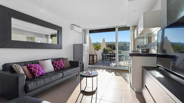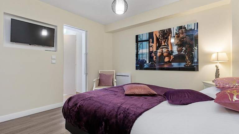Das klimatisierte Apartment im Village Naturiste R4N - Le Wildly Héliopolis Luxe verfügt über ein Schlafzimmer, ein Wohnzimmer und eine voll ausgestattete Küche mit einem Kühlschrank und einer Kaffeemaschine. Das Apartment bietet zudem ein Badezimmer mit Dusche und kostenlosen Pflegeprodukten. Handtücher und Bettwäsche werden gestellt. Eine Terrasse steht den Gästen zur Verfügung.