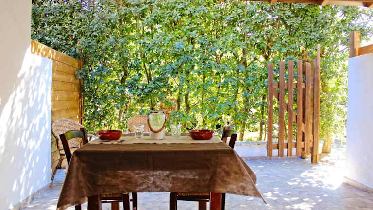 Einige Unterkünfte umfassen eine Veranda oder einen Patio mit Gartenblick, eine voll ausgestattete Küche sowie ein eigenes Badezimmer mit Bidet. Es werden verschiedene Zimmertypen angeboten, und Familienzimmer sind ebenfalls verfügbar. Es wird darauf hingewiesen, dass die Küche beim Check-out sauber hinterlassen werden muss.