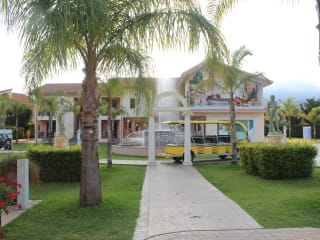 Rezeption mit Safe, Internet-Point, Bar, Garten, Poolbar, Strandbar, umzäunten Parkplatz mit elektronischem Tor, Münzwäscherei,