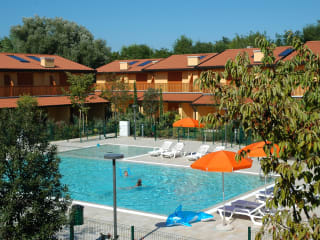 Neu gebautes Feriendorf, komplett eingezäunt bestehend aus 28 zweistöckigen Reihen-Wohneinheiten. Die gesamte Konstruktion ist mit einer gemeinschaftlicher Grünfläche mit Swimmingpool und Sonnenterrasse ausgestattet. Das Feriendorf liegt ca. 500 m vom Strand und ca. 600 Ortszentrum. Jede Einheit verfügt über eine überdachte Terrasse mit Kamin und einen privaten eingezäunten Garten, Parkplatz unter der Pergola oder Garage, Klimaanlage, Sat-Tv, Waschmaschine, Geschirrspueler, Wandsafe und Videogegensprechanlage.