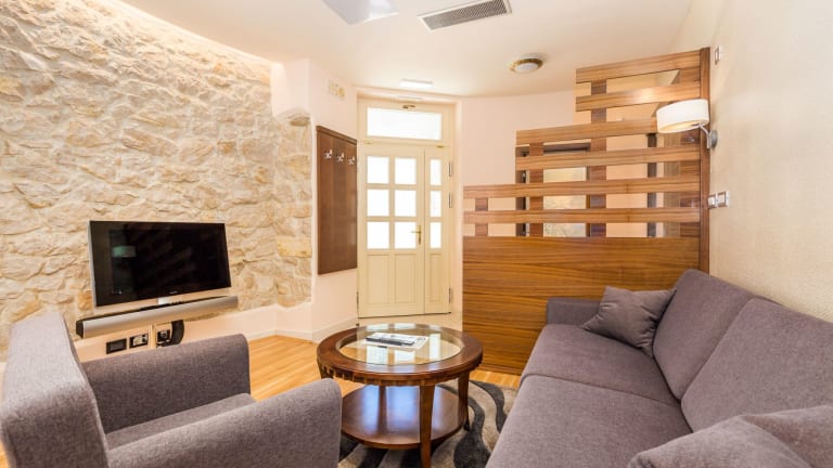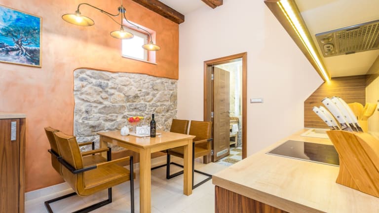 Die Apartments und Studios verfügen über ein Badezimmer mit Badewanne oder Dusche sowie einen Sitzbereich mit Sofa und Flachbild-Sat-TV. Die meisten Unterkünfte bieten einen Blick auf das Meer oder die Altstadt von Rab. Handtücher und Bettwäsche werden bereitgestellt, und jede Unterkunft hat eine eigene Küche mit Esstisch und Kühlschrank.