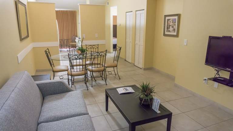 Das Resort bietet Ihnen möblierte Apartments mit einer komplett ausgestatteten Küche. Es sind Nichtraucher-Apartments vorhanden, die mit Kabel-TV und DVD-Player ausgestattet sind. Zudem verfügt das Resort über einen Aussenpool, Basketball- und Tennisplätze sowie einen Fitnessraum.