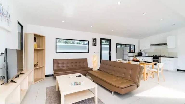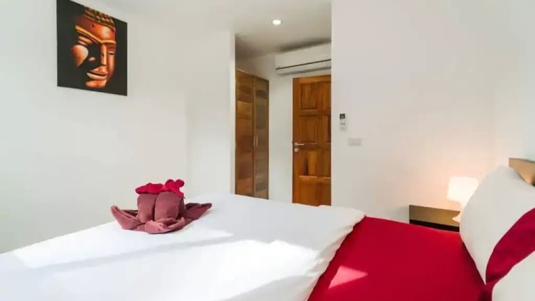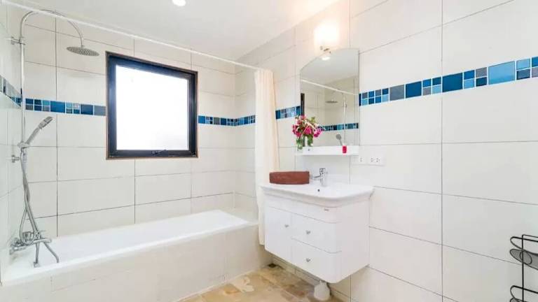 Die Villa mit Klimaanlage umfasst 3 Schlafzimmer, ein Wohnzimmer, eine voll ausgestattete Küche mit Kühlschrank und Kaffeemaschine sowie 2 Badezimmer mit Dusche und kostenlosen Pflegeprodukten. Handtücher und Bettwäsche werden bereitgestellt.