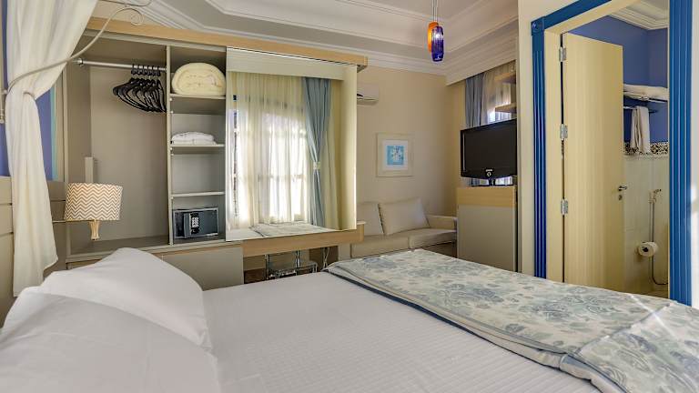Die klimatisierten Zimmer sind individuell gestaltet und verfügen über Balkone. Jedes Zimmer ist mit einem Deckenventilator, Kabel-TV, einer Mikrowelle und einer Minibar ausgestattet.