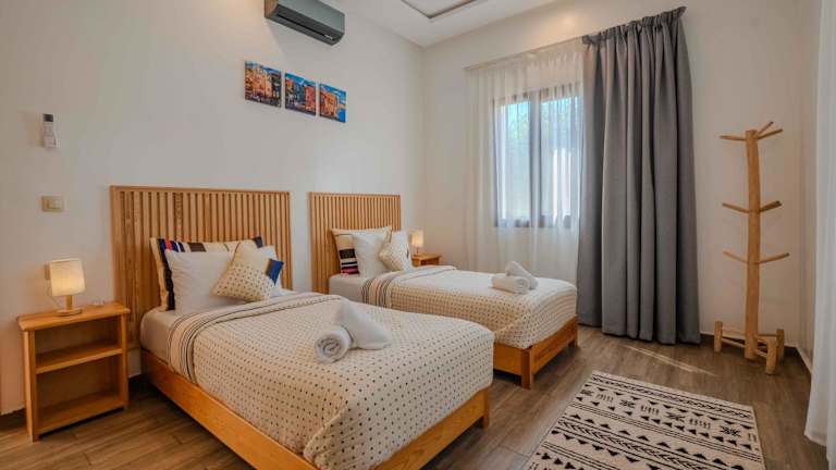 Das Ferienhaus beinhaltet 2 Schlafzimmer, ein Wohnzimmer sowie eine voll ausgestattete Küche mit Kühlschrank und Kaffeemaschine. Ein Badezimmer mit Bidet und Dusche ist ebenfalls vorhanden. Handtücher und Bettwäsche werden bereitgestellt.