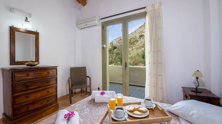 Die klimatisierten Malathiros Villas bieten geräumige Unterkünfte mit traditionellen Elementen wie Holzbalkendecken und Eisenbetten. Jede Villa verfügt über eine modern ausgestattete Küche, einen Essbereich und ein separates Wohnzimmer mit Kamin und Sat-TV. Die Villen bestehen aus einem oder zwei Schlafzimmern und bieten eine möblierte Terrasse mit Grillmöglichkeiten. Einige Villen verfügen über einen eigenen Pool und eine großzügige Sonnenterrasse.