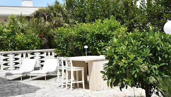 Torre Canne, nahe dem Strand Torre Canne, mit Blick auf einen Garten.