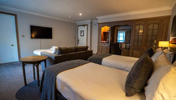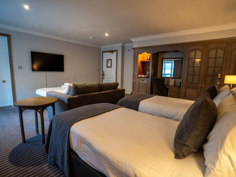 Die geräumigen Zimmer im Buckingham Villiers Hotel verfügen über einen Fernseher mit Sky-Kanälen, eine Tee- und Kaffeezubereitungsmöglichkeit sowie einen Schreibtisch.
