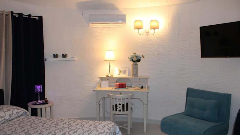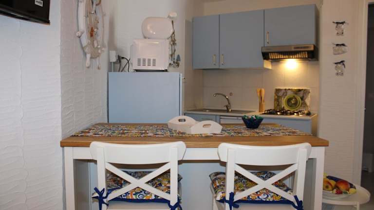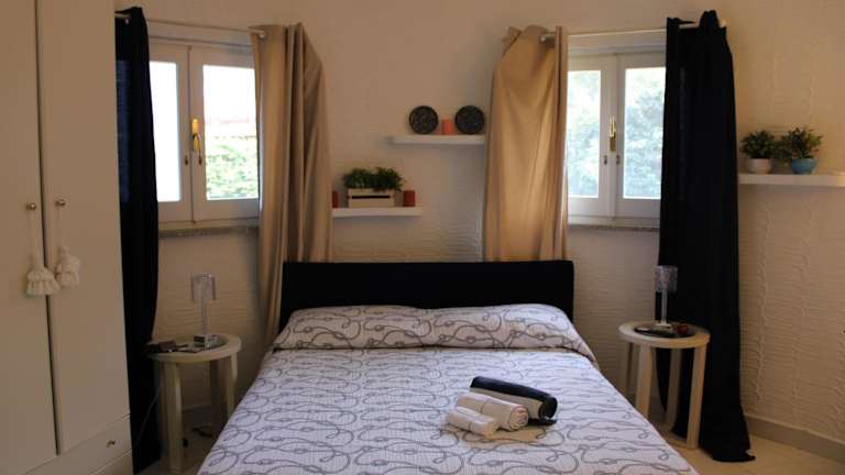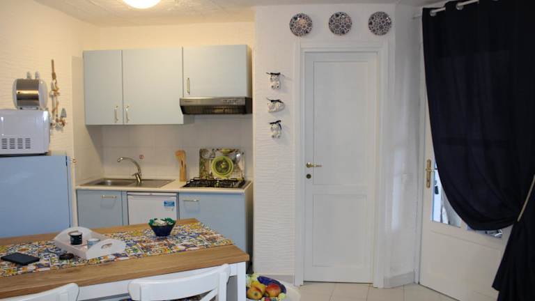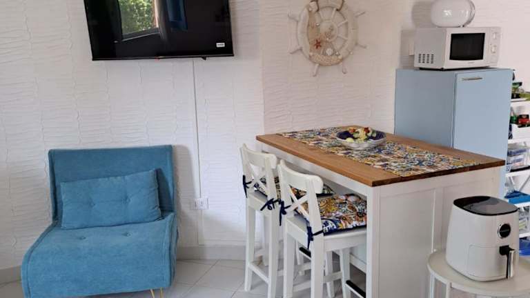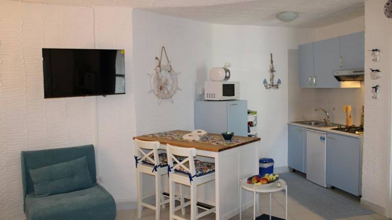 Die Ferienwohnung ist klimatisiert und umfasst ein Schlafzimmer, ein Wohnzimmer sowie eine voll ausgestattete Küche mit Kühlschrank und Kaffeemaschine. Das Badezimmer ist mit einem Bidet und einer Dusche ausgestattet. Auf Anfrage können Handtücher und Bettwäsche bereitgestellt werden.