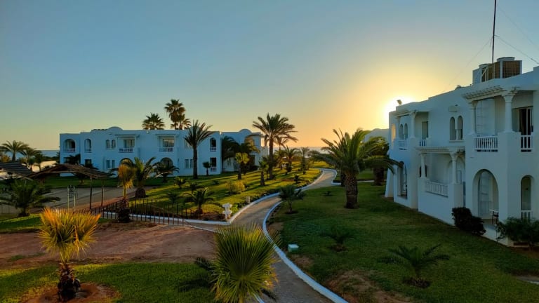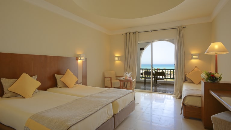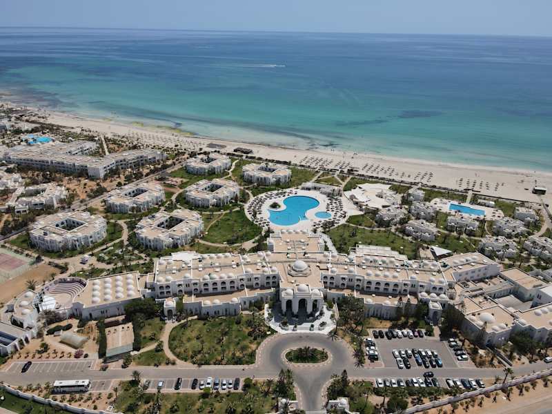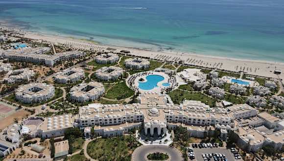 Das Hotel befindet sich an der Westküste der Insel Djerba, in erster Strandlage direkt am langen, feinsandigen Sandstrand. Der nächstgelegene Ort Midoun liegt etwa 6 km entfernt, während das Stadtzentrum Houmet Souk etwa 25 km entfernt ist. Der internationale Flughafen Djerba ist ca. 32 km entfernt. Es gibt auch einen 27-Loch Golfplatz in der Nähe, ca. 4 km vom Hotel.