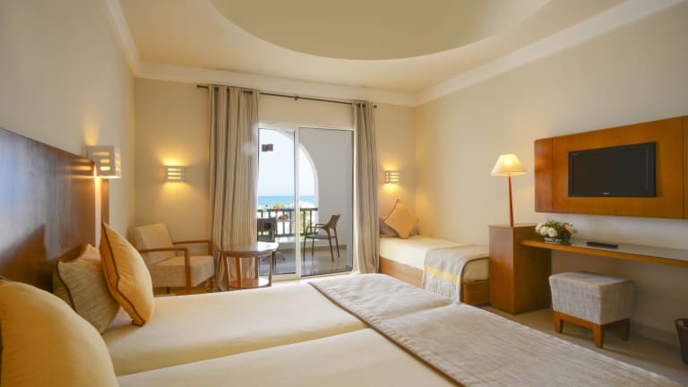 Das Hotel bietet eine Vielzahl von Unterkunftsarten, einschließlich Doppelzimmer im Haupt- und Nebengebäude mit Garten- oder Meerblick. Die Zimmer sind zwischen 32 und 42 m² groß und verfügen über Annehmlichkeiten wie Klimaanlage, Safe, Kühlschrank, Telefon sowie Balkon oder Terrasse. Familienzimmer sind ebenfalls verfügbar, sowie Bungalows mit Meer- oder Gartenblick.