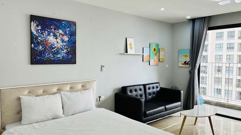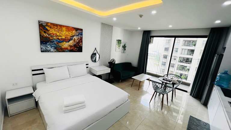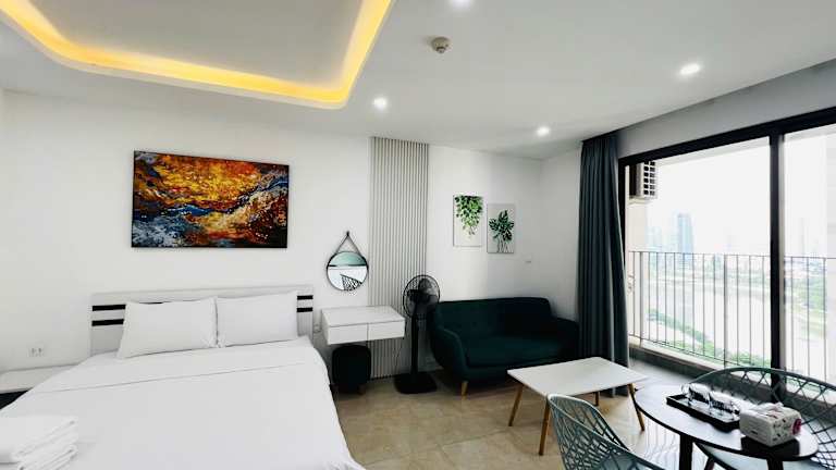 Das Vinhomes D'Capitale bietet eine moderne Ferienwohnung mit zwei Schlafzimmern und zwei Badezimmern. Die Unterkunft verfügt über einen saisonalen Aussenpool, einen Garten sowie eine gemütliche Gemeinschaftslounge und eine Terrasse. Gäste können die Aussicht auf die Stadt und den See geniessen. Die Unterkunft ist für Familien geeignet und bietet ein Kinderspielplatz.