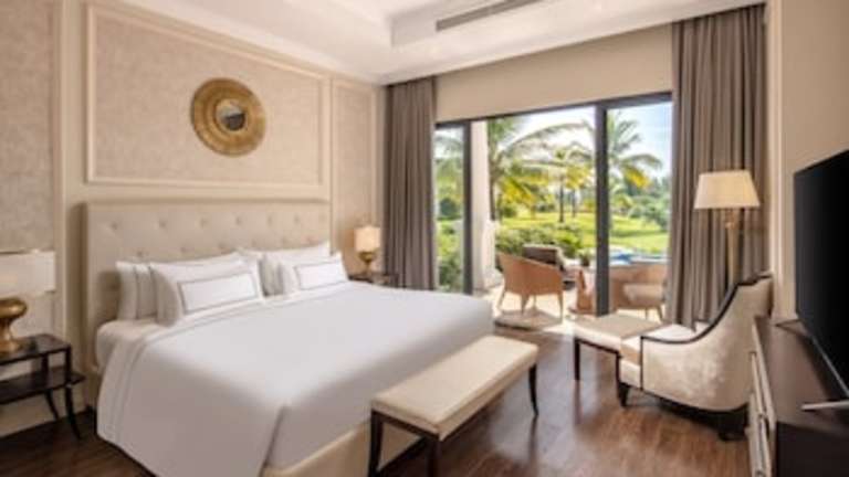 Das Hotel Melia Vinpearl Cua Sot Beach Resort in Ha Tinh bietet seinen Gästen einen angenehmen Aufenthalt in einer freundlichen und einladenden Atmosphäre. Das Personal an der Rezeption steht den Gästen gerne zur Verfügung und sorgt dafür, dass alle Bedürfnisse erfüllt werden. Die Unterkunft verfügt über verschiedene Einrichtungen und Serviceleistungen, darunter ein schöner Garten, ein Spielplatz und kostenfreies WLAN. Gäste können den Außenpool, den Whirlpool und den Wellnessbereich genießen. Es gibt auch ein Restaurant, in dem die Gäste kulinarische Köstlichkeiten genießen können. Kinder werden im Miniclub liebevoll betreut. Die Zimmer sind komfortabel und bieten eine Vielzahl von Annehmlichkeiten.