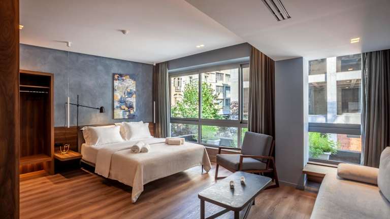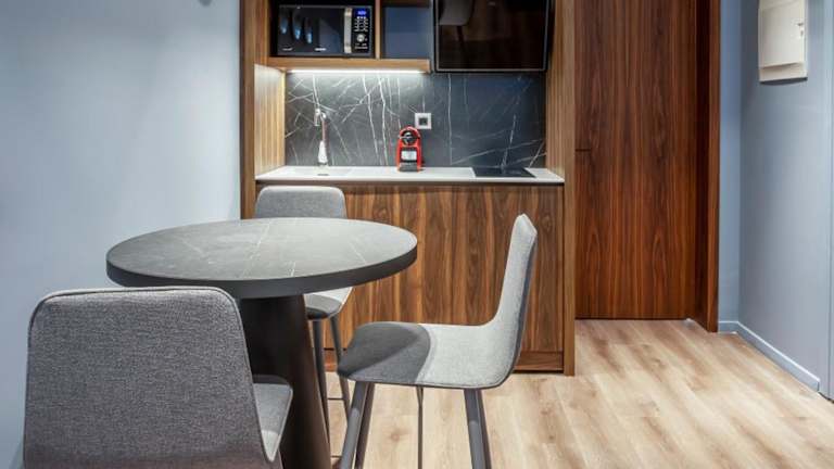 Die Unterkunft verfügt über klimatisierte und schallisolierte Zimmer, die mit einer voll ausgestatteten Küchenzeile, einem Flachbild-TV und einem eigenen Badezimmer ausgestattet sind. In den Zimmern finden die Gäste eine Dusche, kostenlose Pflegeprodukte und einen Haartrockner vor. Zur Ausstattung gehören ein Kühlschrank, eine Mikrowelle, eine Herdplatte sowie eine Kaffeemaschine und ein Wasserkocher.