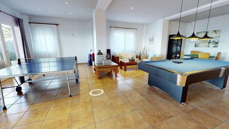 Die Villa umfasst 6 Schlafzimmer, ein Wohnzimmer, eine voll ausgestattete Küche mit Kühlschrank und Kaffeemaschine sowie 4 Badezimmer, die mit Bidet und Dusche ausgestattet sind. Handtücher und Bettwäsche werden bereitgestellt.
