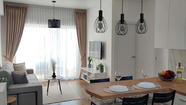 Die Ferienwohnung besteht aus 2 Schlafzimmern, einem Wohnzimmer und einer voll ausgestatteten Küche mit Kühlschrank und Wasserkocher. Zudem ist ein Badezimmer mit Dusche und kostenlosen Pflegeprodukten vorhanden. Handtücher und Bettwäsche werden bereitgestellt.