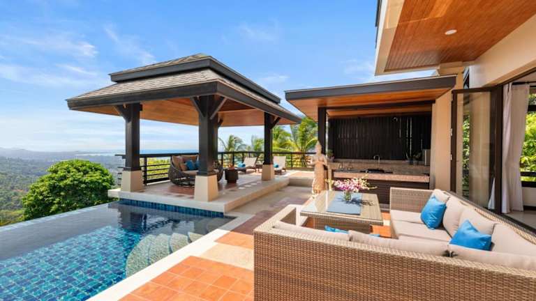 Die Unterkunft Vista Mar - Scenic Sunset & Sea View Villa liegt in Nathon und bietet einen atemberaubenden Blick auf das Meer. In der Nähe befinden sich beliebte Orte wie Fisherman's Village und die beeindruckenden Grandfather's Grandmother's Rocks, die nur 18 km beziehungsweise 22 km entfernt sind. Der internationale Flughafen Ko Samui ist 22 km von der Unterkunft entfernt und ein kostenloser Flughafentransfer steht zur Verfügung.