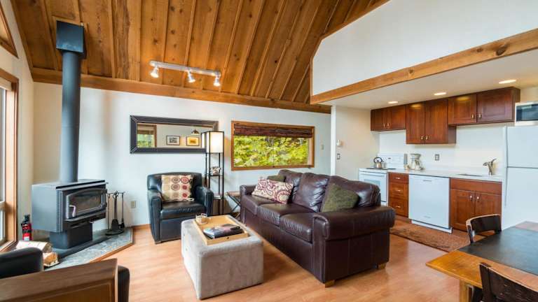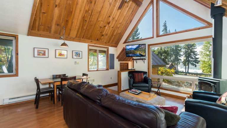 Die Ferienunterkunft umfasst drei Schlafzimmer und ein Badezimmer. Zur Ausstattung gehören Bettwäsche, Handtücher, ein TV mit Kabelkanälen sowie ein Essbereich und eine voll ausgestattete Küche. Zudem bietet das Chalet eine Veranda oder einen Patio mit Blick auf die Berge.