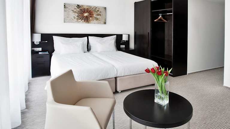 Die Zimmer sind komfortabel ausgestattet und verfügen über eine Klimaanlage (gegen Gebühr), einen Balkon oder eine Terrasse, einen Safe, eine Minibar sowie einen Minikühlschrank. Zudem stehen eine Tee-/Kaffeemaschine, kostenlose Kommunikationsmöglichkeiten durch Internetzugang, Sat-TV und ein Radio zur Verfügung. Die Badezimmer sind mit Duschen ausgestattet. Familienzimmer sind ebenfalls verfügbar.
