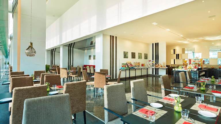 Im Hotel gibt es die Möglichkeit, à la carte zu essen, wobei besondere Ernährungsbedürfnisse auf Anfrage berücksichtigt werden können. Gäste können auch Frühstück im Zimmer bestellen. Für den kleinen Hunger gibt es eine Snackbar. Bei speziellen Anlässen können auch Lunchpakete bereitgestellt werden.