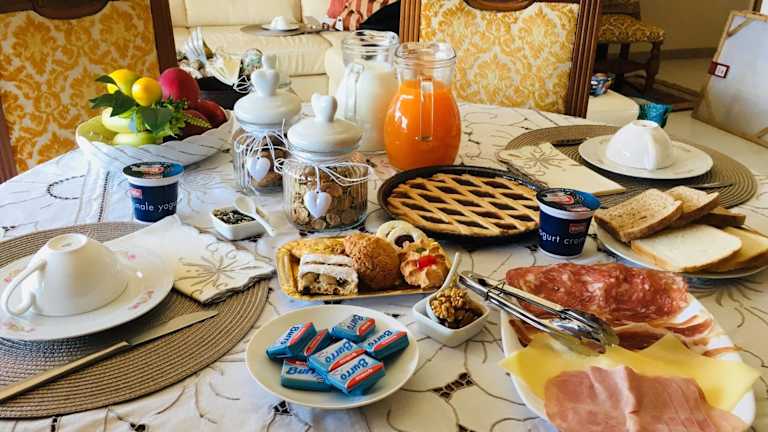 In der Unterkunft wird ein reichhaltiges Frühstücksbuffet mit kontinentalen und italienischen Spezialitäten angeboten, das für einen guten Start in den Tag sorgt.