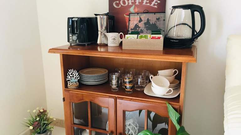 Die Wohneinheiten sind mit modernen Annehmlichkeiten ausgestattet, darunter Kühlschrank, Mikrowelle, Kaffeemaschine, Toaster und Wasserkocher. Ein voll ausgestattetes Gemeinschaftsbad mit Bidet und Haartrockner ist ebenfalls vorhanden.