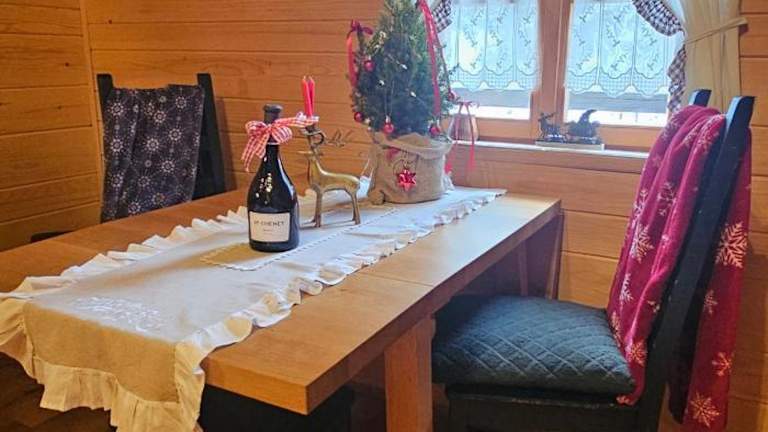 Die Unterkunft bietet eine voll ausgestattete Küche mit Kühlschrank, Herdplatte und Wasserkocher, wo Gäste ihre Mahlzeiten zubereiten können. Für die Verpflegung stehen Grillmöglichkeiten zur Verfügung. Die Gäste können zudem nach dem Frühstück den Tag mit einem Zopf oder Gipfeli beginnen (nicht direkt angeboten, aber leicht selbst zuzubereiten).