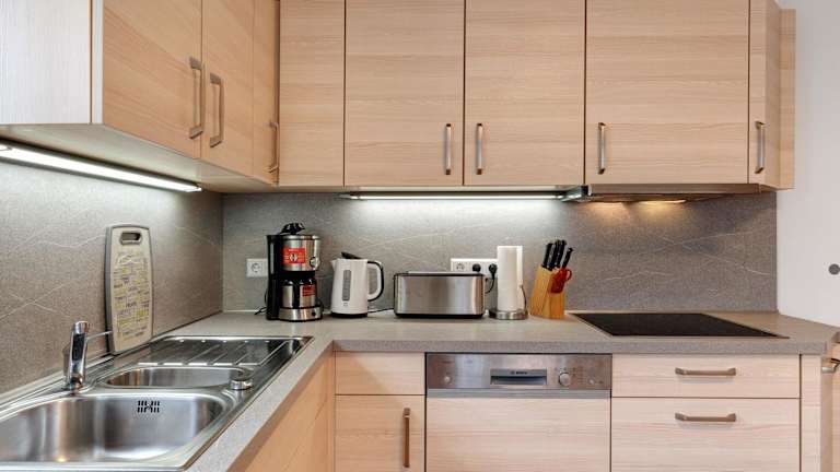 Die Ferienwohnung besteht aus 2 Schlafzimmern, einer Küche mit Kühlschrank und Geschirrspüler sowie einem Badezimmer mit Dusche. Handtücher und Bettwäsche sind vorhanden. Die Unterkunft ist mit modernen Annehmlichkeiten ausgestattet, darunter eine Waschmaschine und kostenlose Pflegeprodukte.
