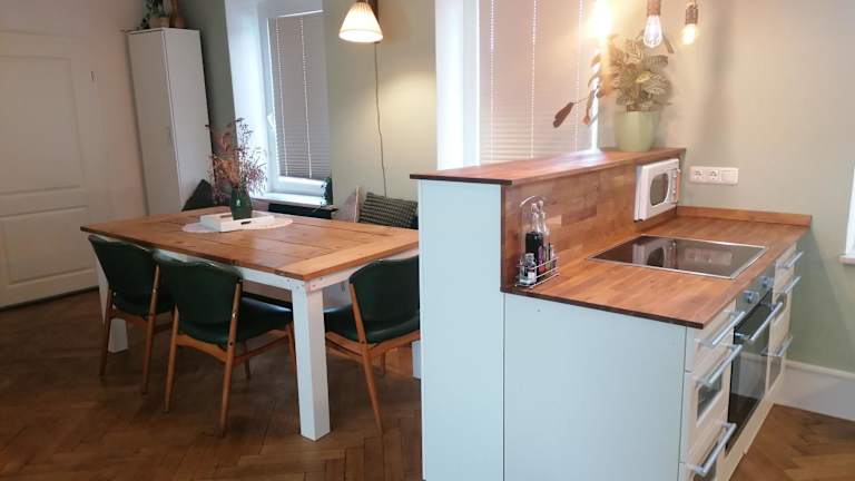 Die Ferienwohnung verfügt über ein Schlafzimmer, ein Wohnzimmer, einen Balkon und eine gut ausgestattete Küche. Zu den Annehmlichkeiten gehören ein Satelliten Flachbild-TV, ein Badezimmer mit Dusche und Badewanne sowie die Bereitstellung von Handtüchern und Bettwäsche.