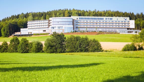 Viele Gäste besuchen uns schon seit Jahren immer wieder. Für uns ist das ein wunderbares Kompliment, denn es beweist, dass es uns stets gelingt, für jeden unserer Gäste eine entspannte Atmosphäre zu schaffen, in der man sich von der An- bis zur Abreise wohlfühlt. Unsere 175 Komfortzimmer mit hochwertiger Ausstattung bieten Ihnen alles, was Sie von einem angenehmen Gesundheitsaufenthalt erwarten. Der angrenzende Wald hat uns bei der Gestaltung inspiriert, so fiel dann auch die Wahl auf natürliche Materialien und beruhigende Farben, u.a. wurden neben dem Bett Würfel aus Zirbenholz angebracht, ein Material, das für seine schlaffördernde Wirkung bekannt ist.