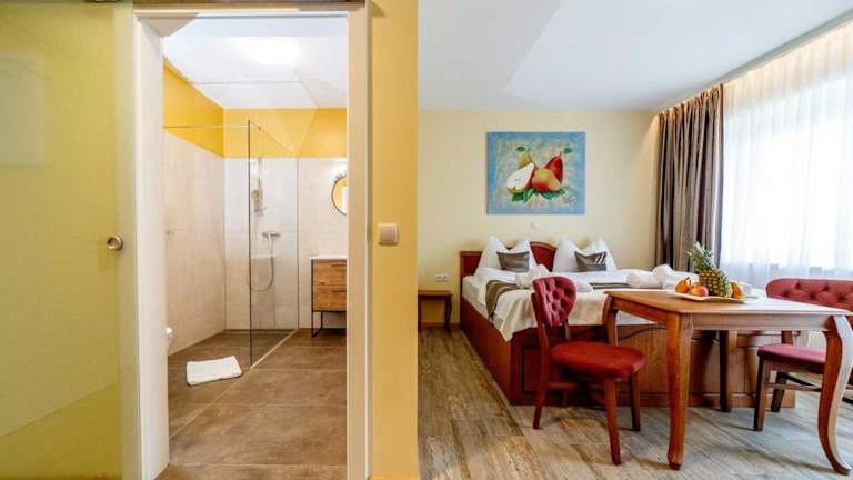Die Unterkunft befindet sich im Ort Wolfsberg im Schwarzautal und bietet eine ruhige Umgebung für einen entspannenden Aufenthalt.