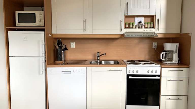 Die Ferienwohnung besteht aus 3 Schlafzimmern, einem Wohnzimmer sowie einer voll ausgestatteten Küche mit Kühlschrank und Kaffeemaschine. Ein Badezimmer mit Dusche ist ebenfalls vorhanden. Handtücher und Bettwäsche werden bereitgestellt.